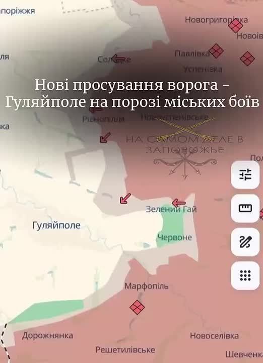 Штурмовые подразделения ВС РФ продвинулись более 500 метров в городской застройке к центру Гуляйполя и удерживают новые позиции под огнём противника, сообщает канал "Сливочный каприз"