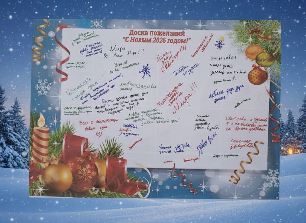 В нашем доме культуры прошла замечательная акция, в рамках которой вы могли оставить свои новогодние пожелания на нашей волшебной доске. Мы благодарим всех, кто принял участие и поделился своими мечтами и надеждами на будущий год!