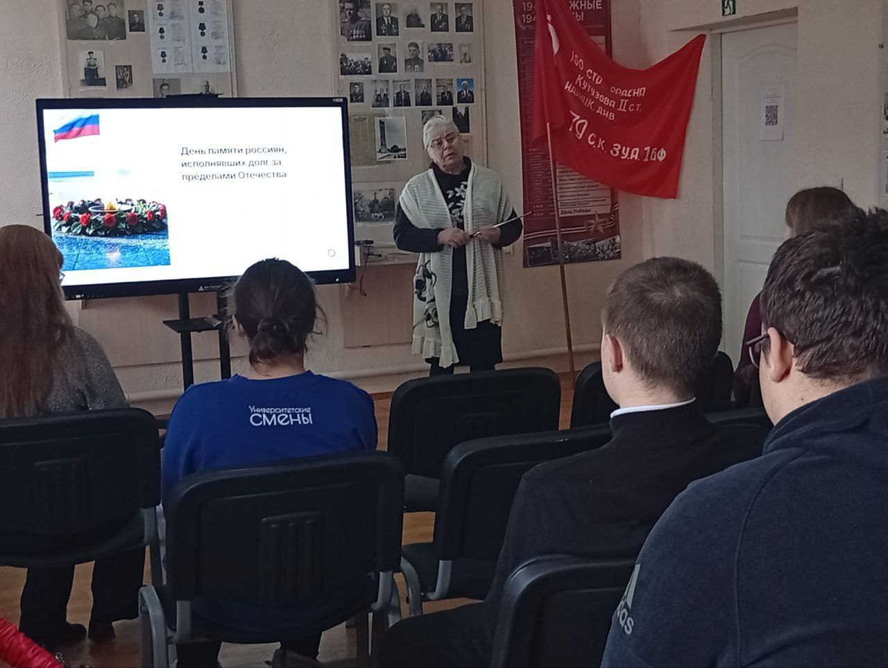 15 февраля 1989 года последняя колонна советских войск покинула территорию Афганистана, завершив десятилетнюю войну . Войны в Афганистане, Чечне, Сирии кажутся очень далекими – на экранах телевизоров и страницах газет они выглядят не такими уж кровавыми и почти совсем не страшными. Но снаряды этих войн, хоть и рвутся далеко от российских границ, отзываются в наших домах эхом горя и потерь. Об этих событиях в МБУ «Приазовский краеведческий музей» состоялся исторический экскурс. Участникам мероприятия рассказали о том, что через горнило локальных войн прошло огромное количество солдат и офицеров, и, к сожалению, не все вернулись домой. Напомнили о том, что живущим сегодня необходимо помнить о мужестве, стойкости и героизме советских солдат, принимавших участие в военных событиях за рубежом.