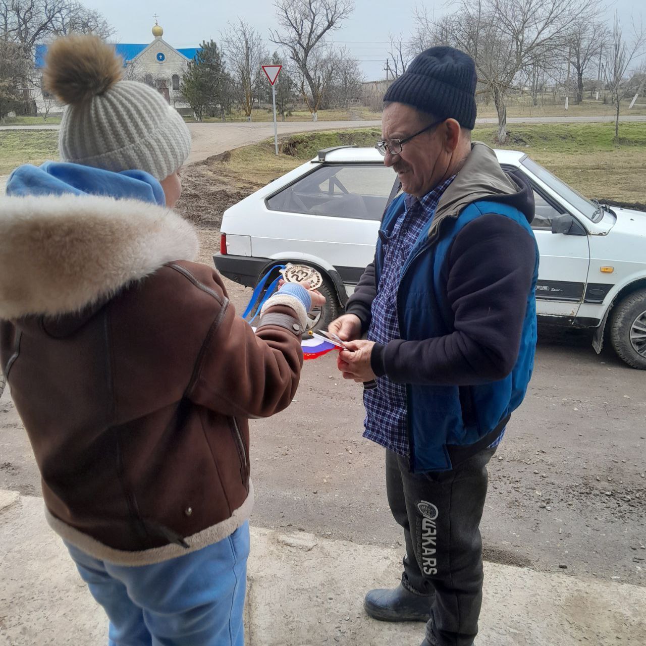 Все участники акции получили поздравительные открытки,флаг РФ и памятные медали. В ответ мужчины дарили светлые эмоции и надежды на мирное будущее.