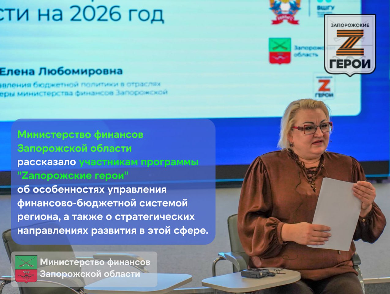 "Эффективное управление финансами позволяет государству реализовывать важные социальные проекты, такие как «Запорожские герои», которые становятся мощным стимулом для развития региона. " - отметила Елена Дорогова