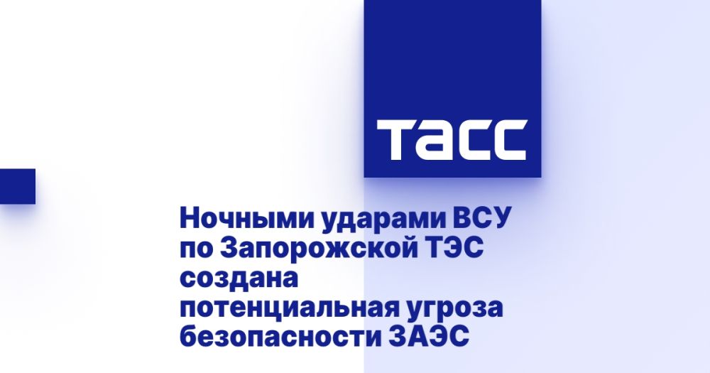 Ночными ударами артиллерии ВСУ по Запорожской ТЭС создана потенциальная угроза безопасности ЗАЭС - станция.Из-за обстрела ВСУ единственная линия энергоснабжения 330 кВ "Ферросплавная-1" Запорожской АЭС выведена из строя - ЗАЭС.