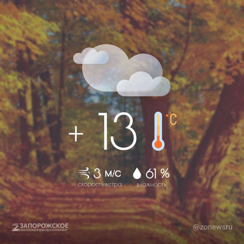 Сегодня в регионе солнечная погода: в Мелитополе +15°C, в Энергодаре, Токмаке и Каменке-Днепровской +14°C, а в Бердянске +12°C. Осадков не ожидается, ясное небо создаёт прекрасные условия для осенних прогулок и отдыха на природе.Смотрите За!ТВ в...