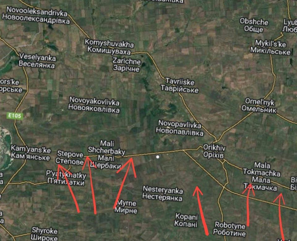 Запорожское направление Участок Малой Токмачки.При поддержке бронетехники и расчетов БПЛА ВС РФ провели успешную атаку в направлении Новоданиловки, где наши группы были зафиксированы в центре села.В Малой Токмачке продолжаются бои на...