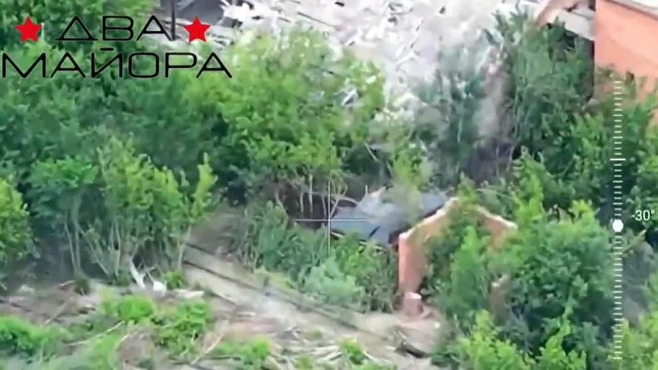 Командная работа!Оптоволоконный FPV-дрон "КВН" осуществляет объективный контроль удара FPV-дрона самолетного типа "Молния-2" и осуществляет добивание орудия на артиллерийской позиции ВСУ на Ореховском направлении в Запорожской области.