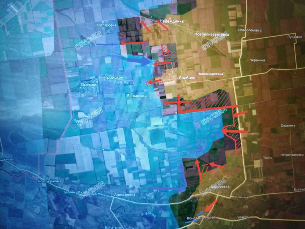 В районе Надеждинка — Запорожье наши подразделения ведут встречные бои в восточной части Преображенки и атакуют в направлении Троицкого и Богдановки.