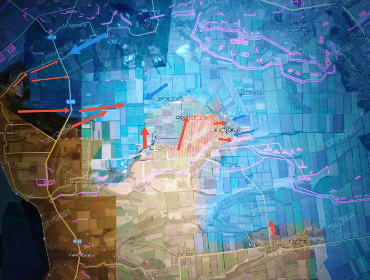 Южнее, из района балки Перерва и со стороны Лукьяновского наши подразделения прорываются к Магдалиновке. Были случаи, когда пилоты БпЛА противника попадали здесь в засады наших штурмовых групп.