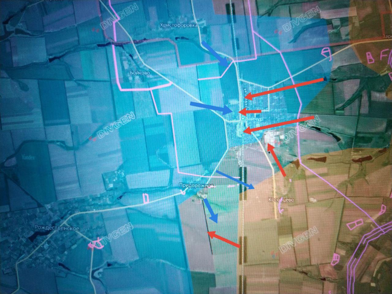 Бои на подступах к Рождественскому и Воздвижевке, Цветковому, где противник любой ценой пытается удержать опорные пункты 3-го рубежа, Староукраинке.