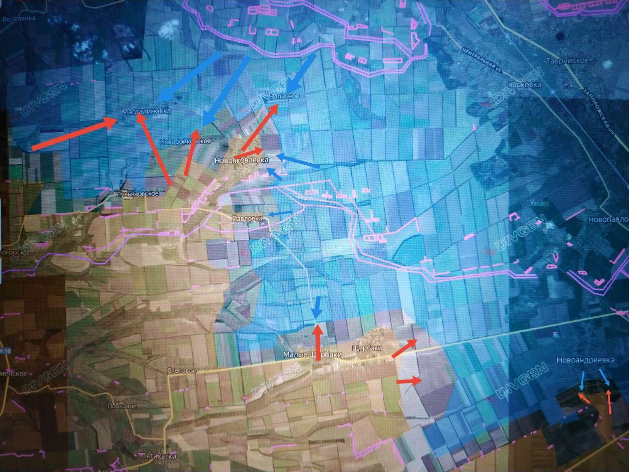 Сам по себе участок фронта достаточно сложный для дальнейшего продвижения. Без зачистки и взятия под контроль ряда опорных пунктов противника западнее Новояковлевки и Павловки, дальнейшее продвижение в направлении Юрковки и Таврийского для блокирования Ореховского оборонительного района с запада будет очень затруднено. Ломиться в лоб на 3-й рубеж южнее Камышевахи тем более...