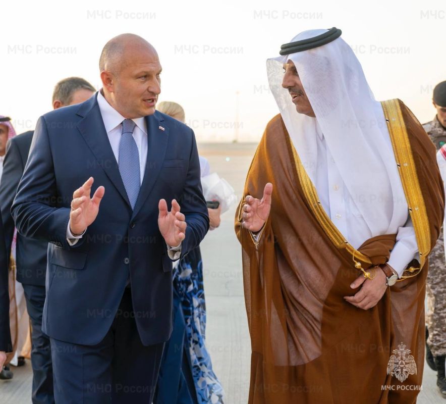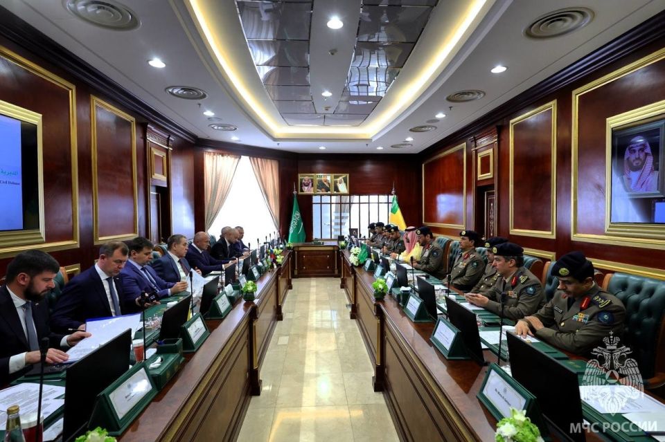 Переговоры Александра Куренкова и Хамада Ибн Сулеймана Альфараджа прошли в штаб-квартире Генерального директората гражданской обороны Королевства Саудовская Аравия в преддверии чемпионата мира по пожарно-спасательному спорту.