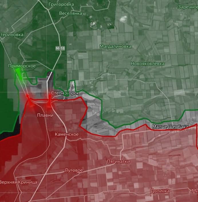 Запорожское направлениеПодразделения ГрВ "Днепр" продолжают продвигаться в Степногорске и центральной части Приморского.Нашим подразделениям удалось продвинуться в северо-западной части, севернее Степногорска и в северной части ботанического заказника...