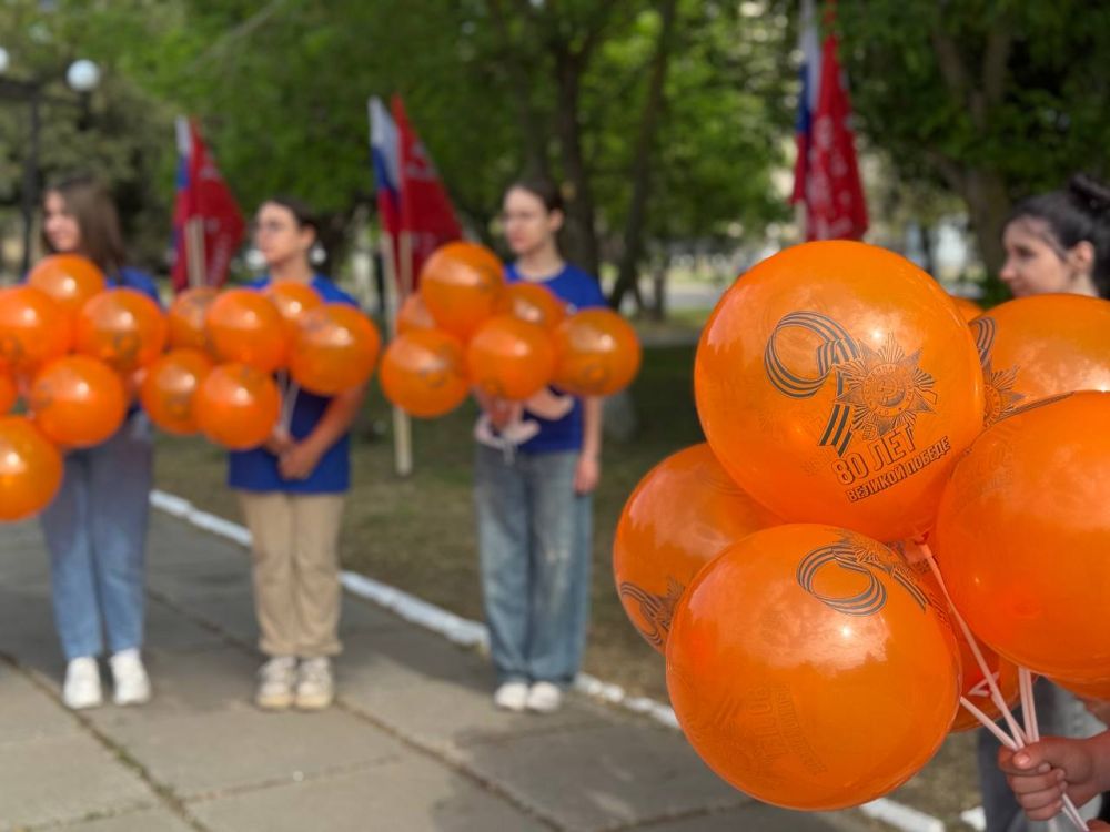 Глава Приазовского МО Алексей Диковченко вместе с атаманом Приазовского хуторского казачьего общества Виктором Пляшко и активистами Молодой Гвардии Единой России торжественно возвели Знамя Победы на главной площади района.