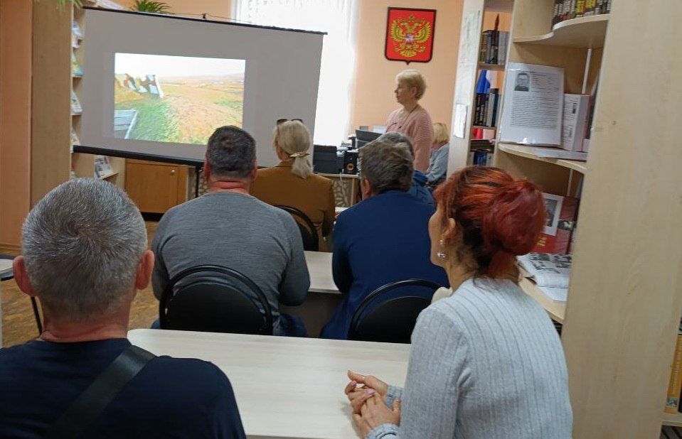 Рассказ сопровождался презентацией книжной выставки «Война. Победа. Память», на которой были представлены книги о героях войны и их подвигах.