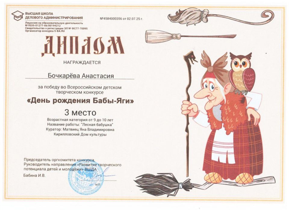 Воспитанники Кирилловского Дома культуры, посещающие кружок художественного творчества "Умелые ручки", приняли участие во Всероссийском детском творческом конкурсе "День рождения Бабы-Яги".