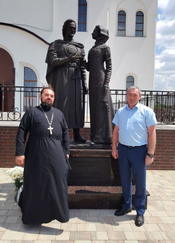 В День семьи, любви и верности на территории Богоявленского собора в Энергодаре открыли скульптурную композицию русских православных святых Петра и Февронии!