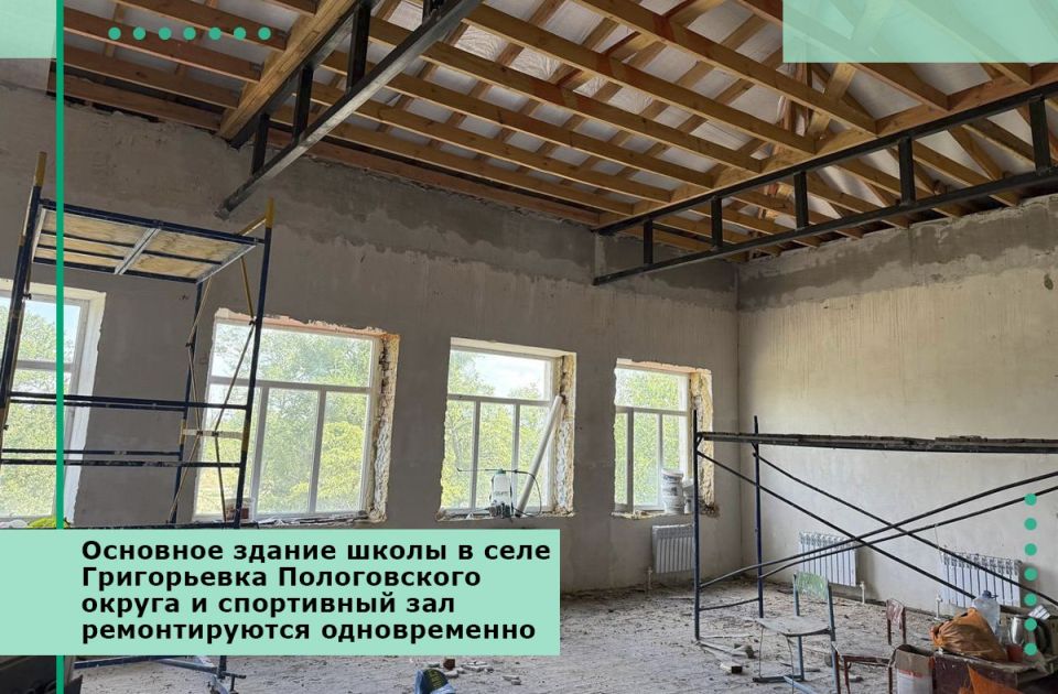Основное здание школы в селе Григорьевка Пологовского округа и спортивный зал ремонтируются одновременно