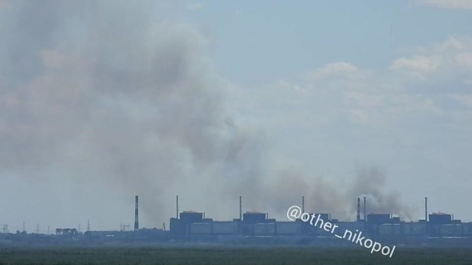Над территорией Запорожской атомной станции и городом Энергодар очевидцы зафиксировали мощный столб дыма. Кадры с места происшествия массово публикуются в местных Telegram-каналах.