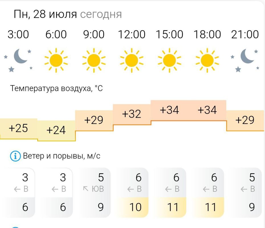 Температура воздуха ночью +24°C, днём +34°C, ветер северо-восточный, восточный, порывы ветра до 10-11 м/с.