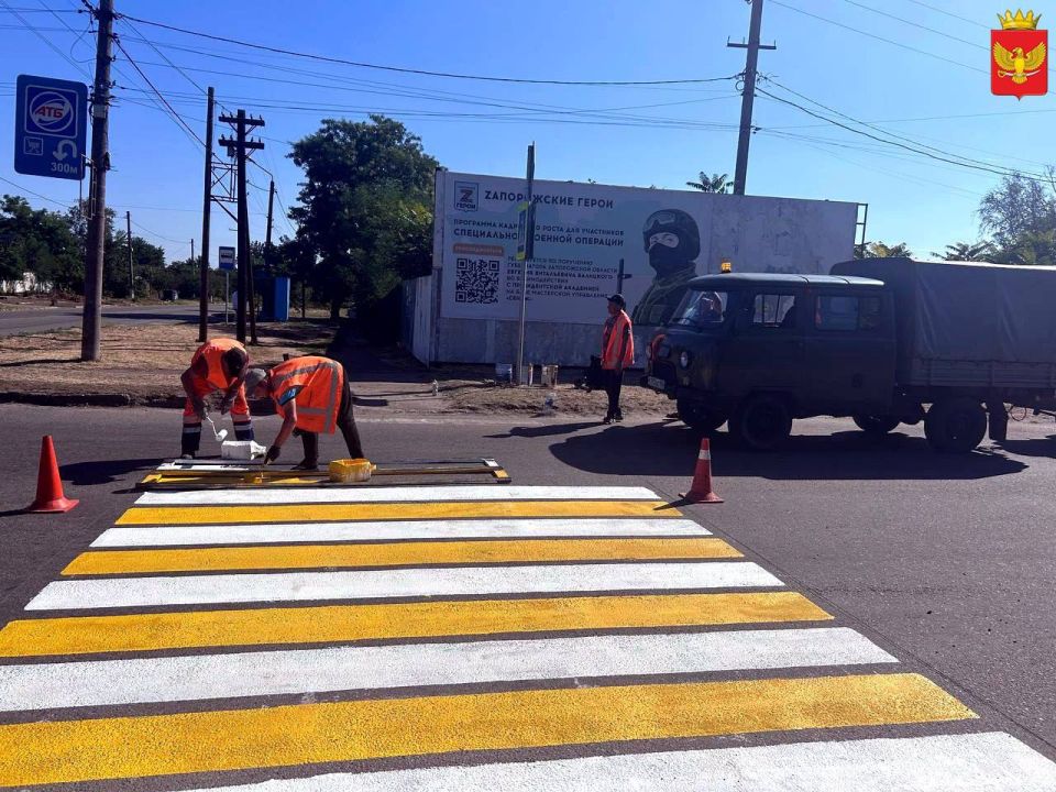 Работники ДЭУ ГУП АЗО соседнего Бердянска продолжают проводить цикл плановых дорожных работ на территории Приморска.