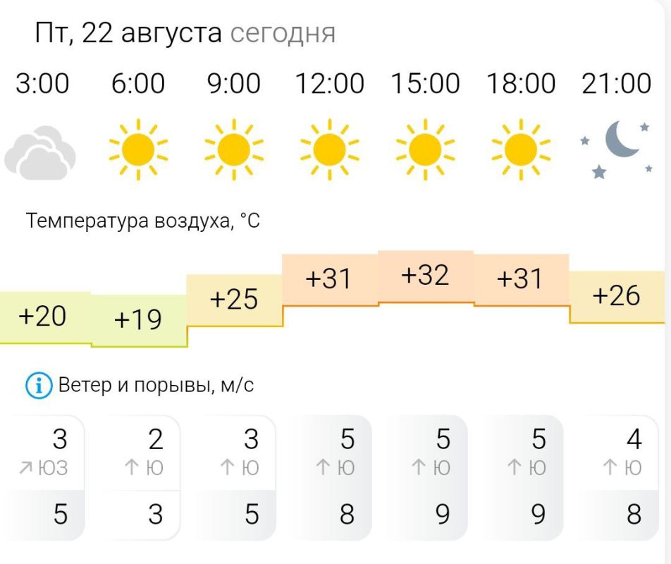 В пятницу, 22 августа в Энергодаре ясно.