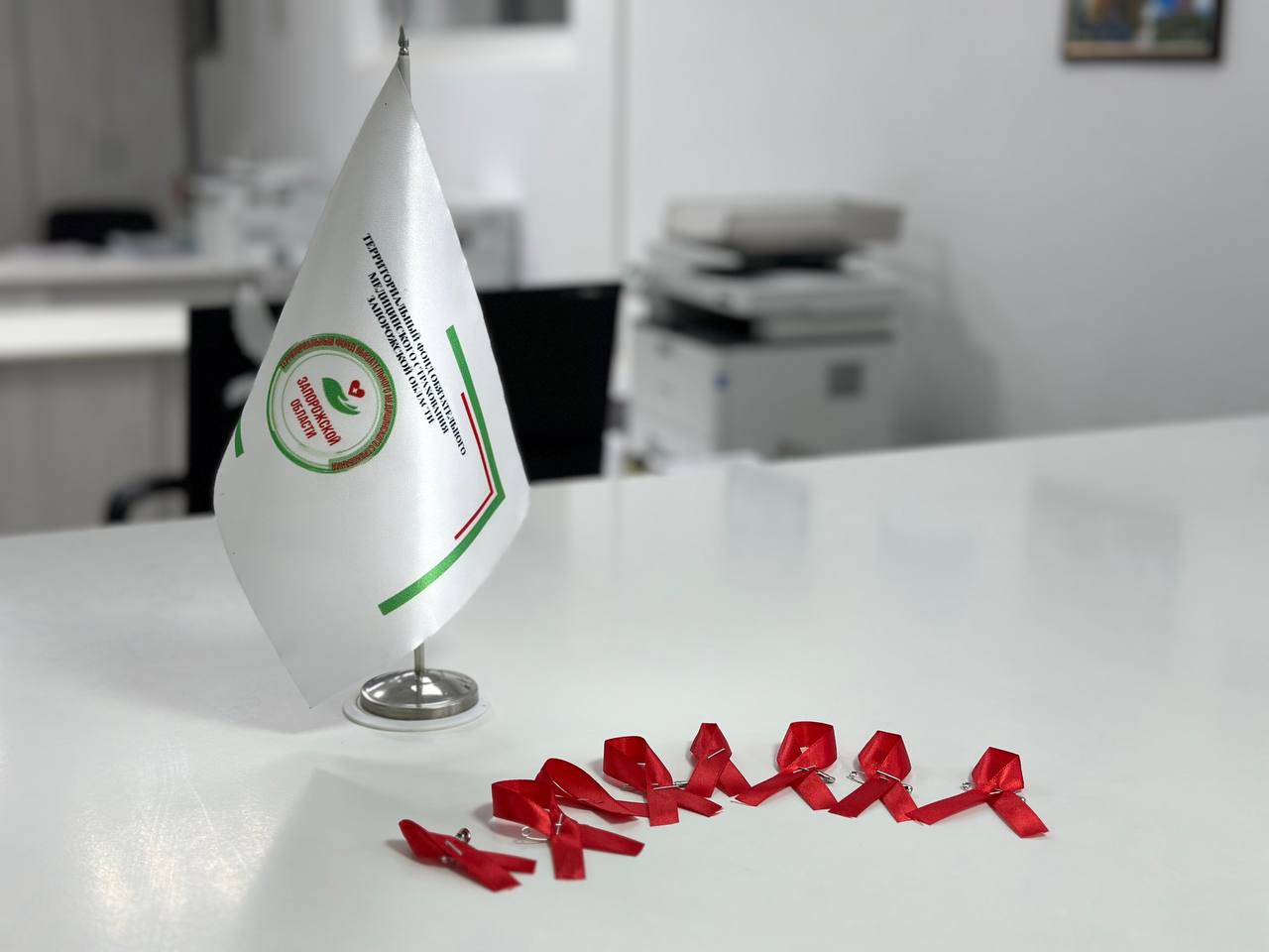 Символично, что в канун 1 декабря, в знак поддержки людей с ВИЧ сотрудники ТФОМС Запорожской области раздали красные ленточки - символ дня борьбы со СПИДом