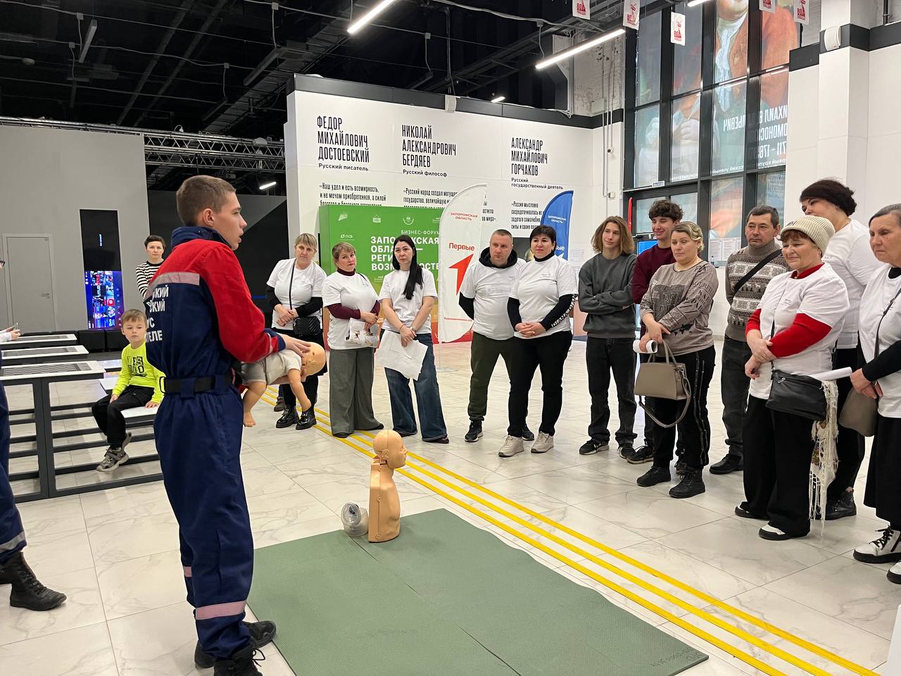Добровольцы Запорожского РО ВСКС организовали интерактивную площадку, на которой участники осваивали основы оказания первой помощи, разбирали шаги спасения и отрабатывали навыки, которые однажды могут спасти жизнь.
