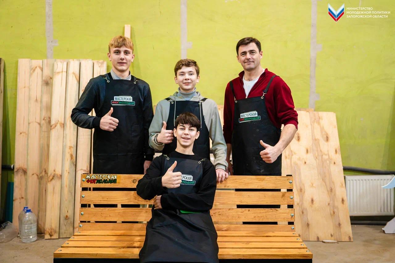 Ранее ребята уже посещали мастерскую - они работали над созданием эскиза будущего изделия. На этот раз активисты воплотили задуманное. Совместными усилиями они сделали лавочку, котораябудет установлена в одном из общественных мест Бердянского района.