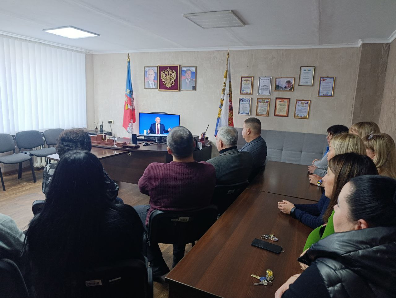Коллектив территориального отдела города Днепрорудное смотрит прямую линию с Владимиром Путиным