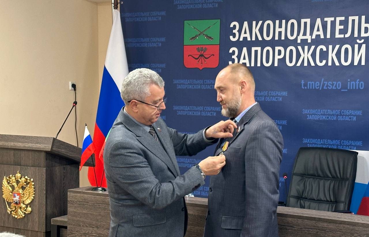 Торжественно вручил медаль Министерства обороны РФ «Участнику специальной военной операции» депутату Заксобрания Запорожской области Сергею Юрченко — человеку, чей боевой путь стал олицетворением долга, отваги и верности