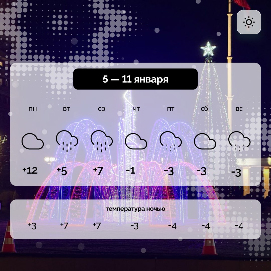 На протяжении недели температура воздуха составит +2 °C днем, а ночью температура воздуха не опустится ниже -7 °C.