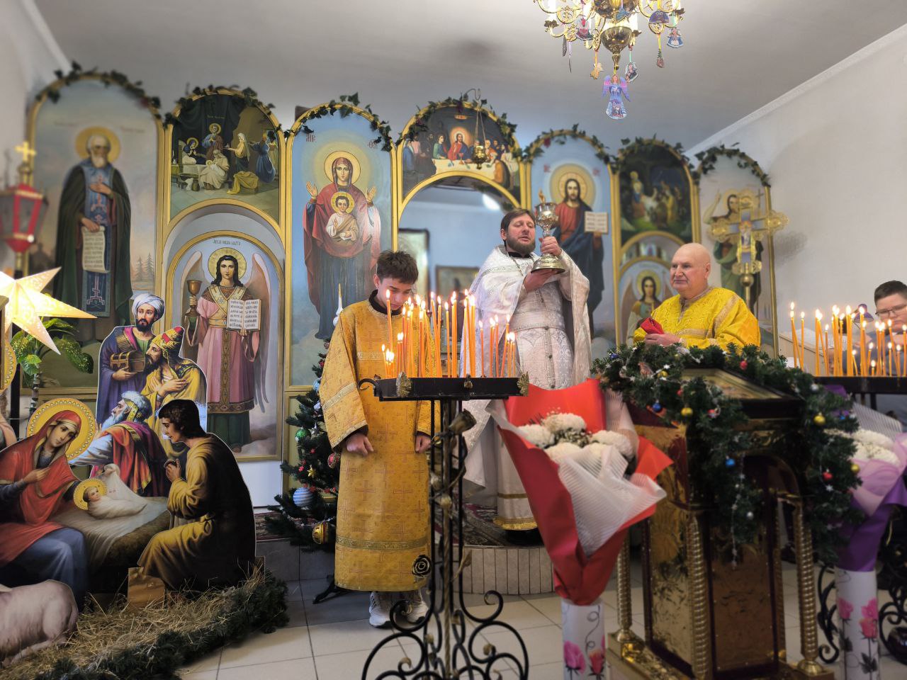 Всем приходом вознесли благодарственные молитвы за спасение рода человеческого, помолились о мире и о здравии близких, приняли святое причастие и возрадовались благой вести.