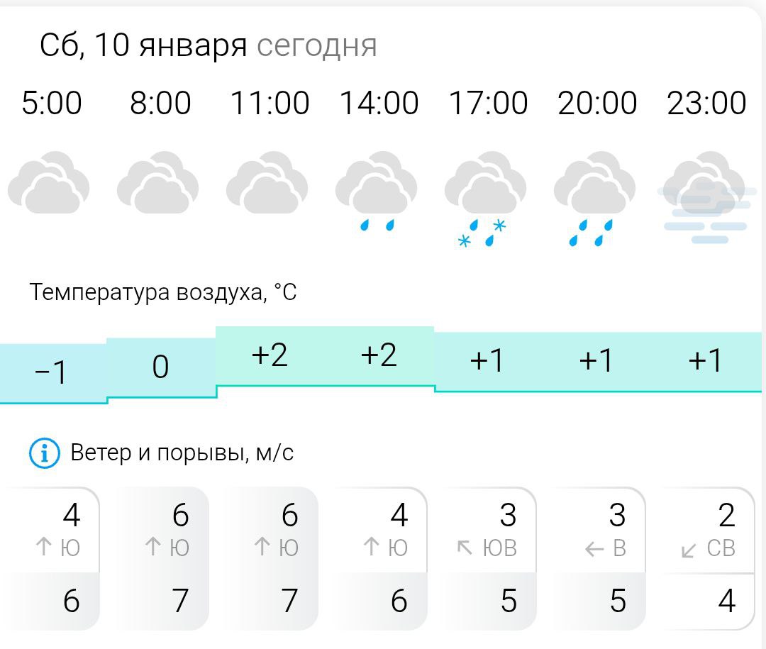 Температура воздуха ночью -1°C, днём +2°C, ветер переменный, 2-6 м/с.