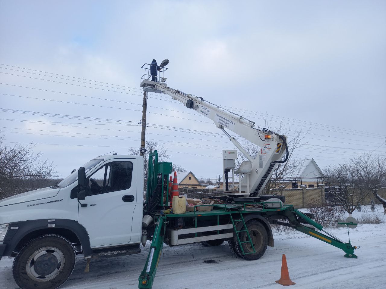 Совместная бригада Акимовского ЖКХ и шеф-региона Ярославской области продолжает модернизацию сети уличного освещения сёл Владимировка и Александровка.