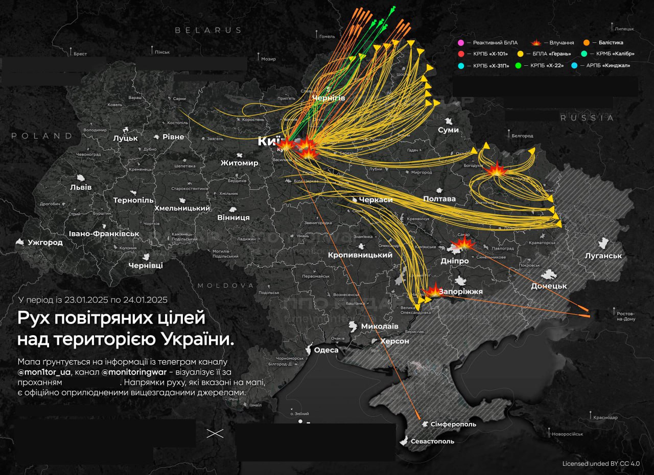 Атакованы объекты в Киевской, Днепропетровской, Запорожской и Харьковской областях.