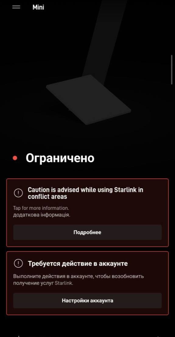Старлинки на фронте легли. У всех появилось такое, нужно просто перегрузить тарелку и сообщение исчезает и тарелка продолжает работать