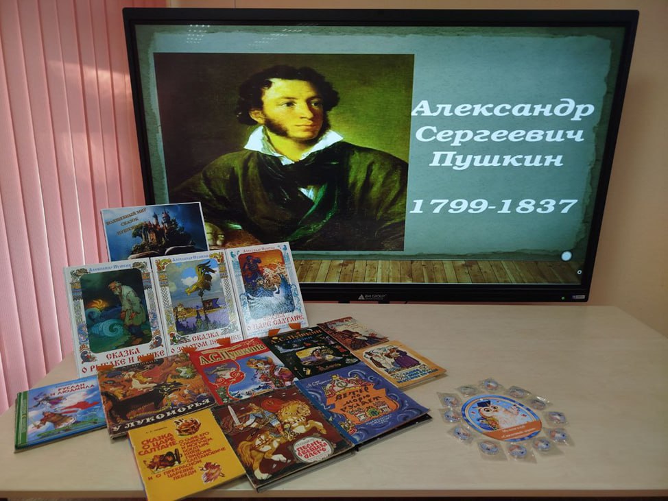 Библиотекарь познакомили ребят с биографией Александра Сергеевича. Дошкольники узнали о жизненном и творческом пути поэта, вспомнили отдельные сюжеты его сказок, дружно и весело узнали сказки по картинкам на экране без подсказки. Ребята показали хорошие знания добрых, поучительных и мудрых сказок Пушкина.