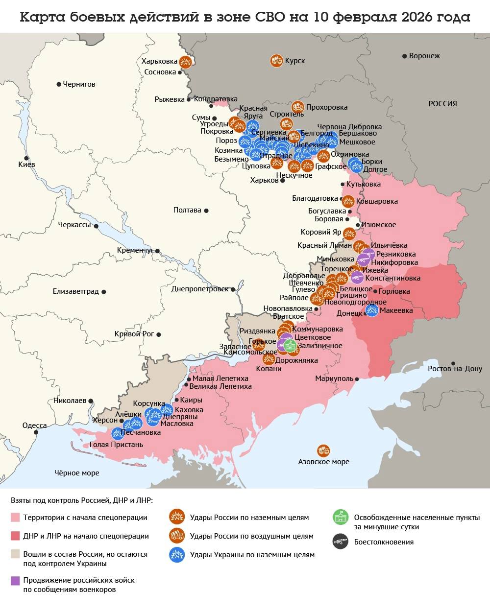 Карта боевых действий в зоне СВО на 10 февраля 2026 года