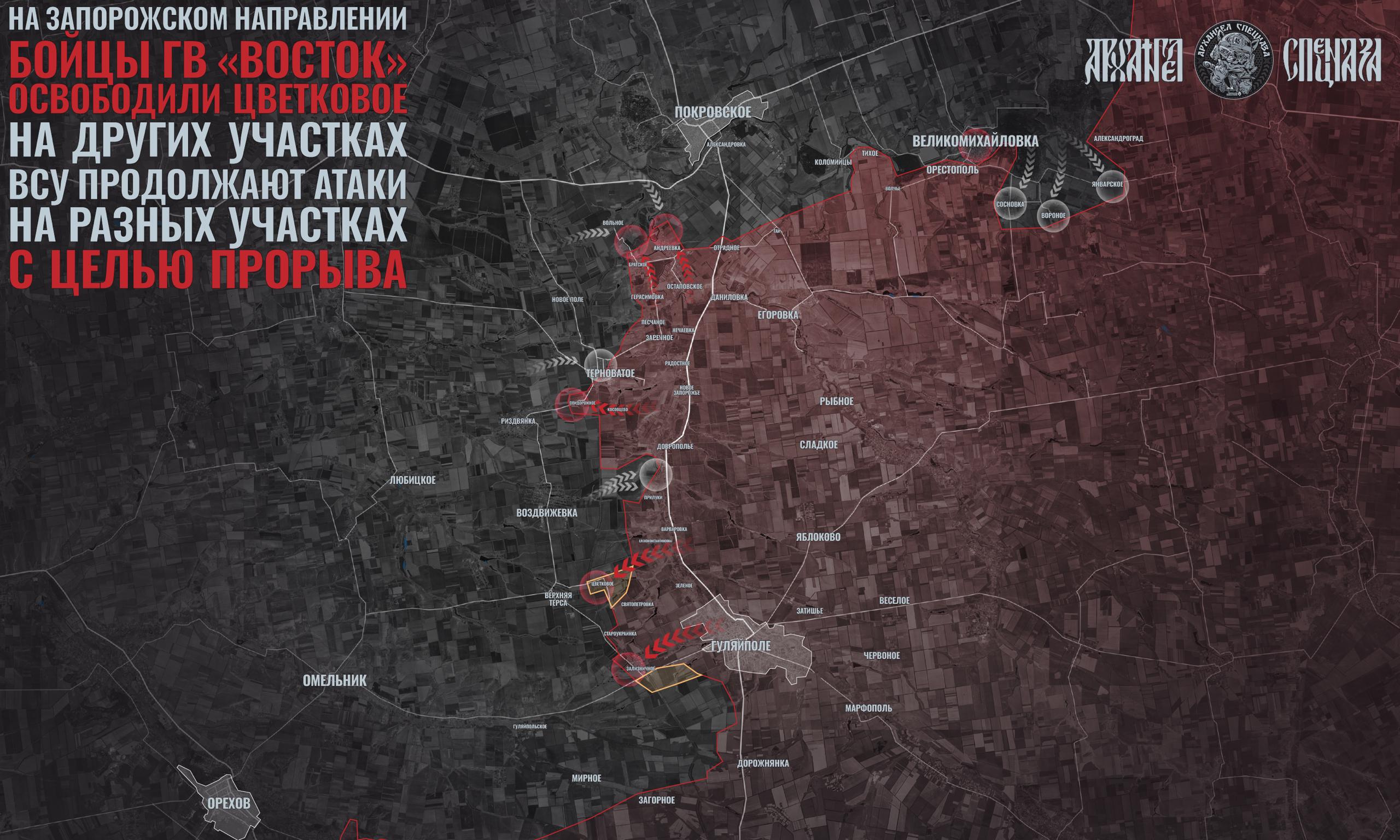 Сегодня бойцы ГВ «Восток» освободили очередное село. На этот раз был установлен контроль над Цветковым к западу от Гуляйполя.