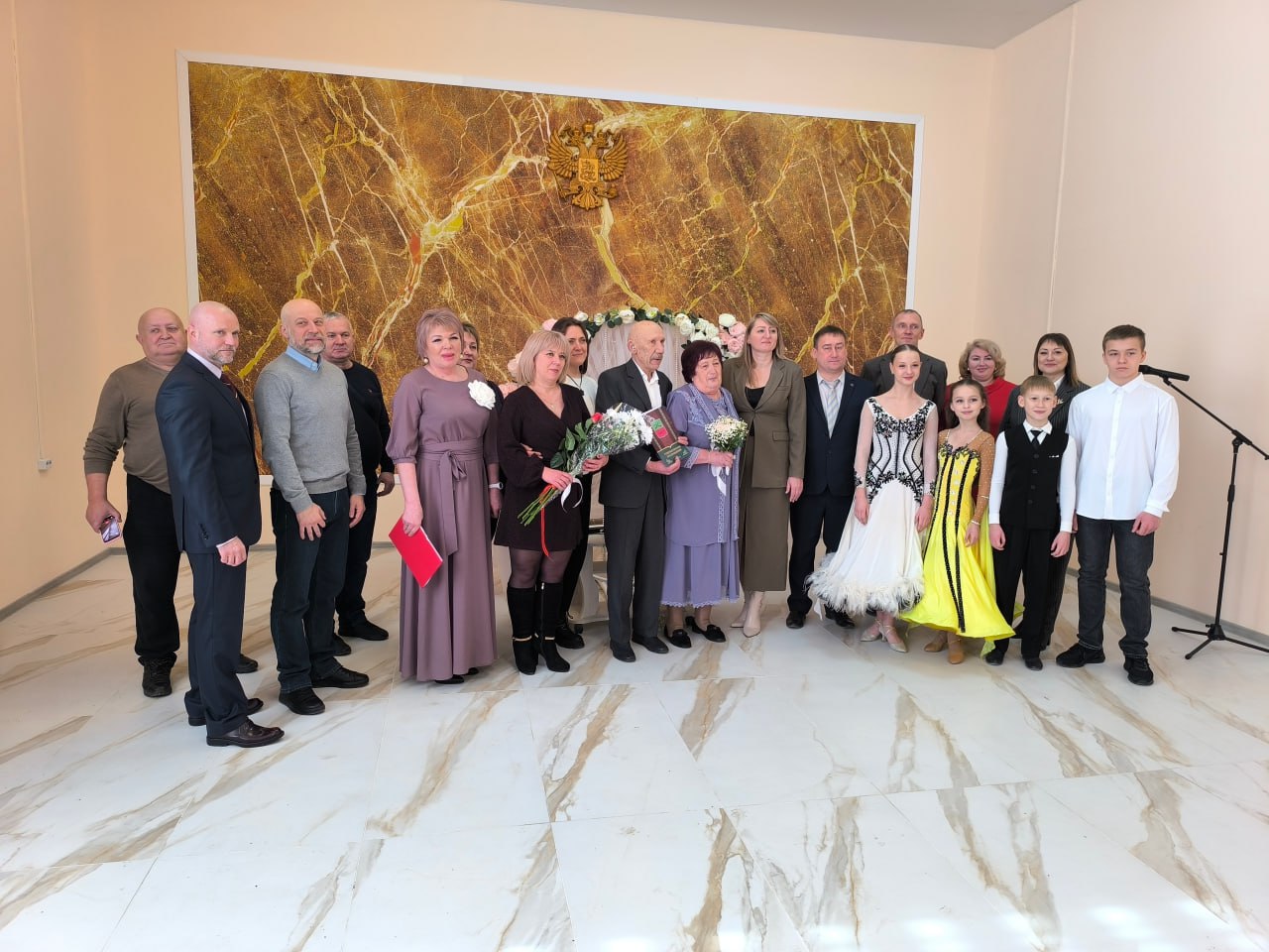 Первой семейной парой, переступившей порог нового ЗАГСа, стала чета Семендяевых – Валентина и Николай. В счастливом браке они прожили 55 лет. А расписались столько же лет назад, 20 февраля 1971 года. По-прежнему влюбленные друг в друга люди поставили свои первые подписи в книге брачующихся, подарили всем гостям традиционный танец молодых и скрепили торжество трогательным семейным поцелуем.
