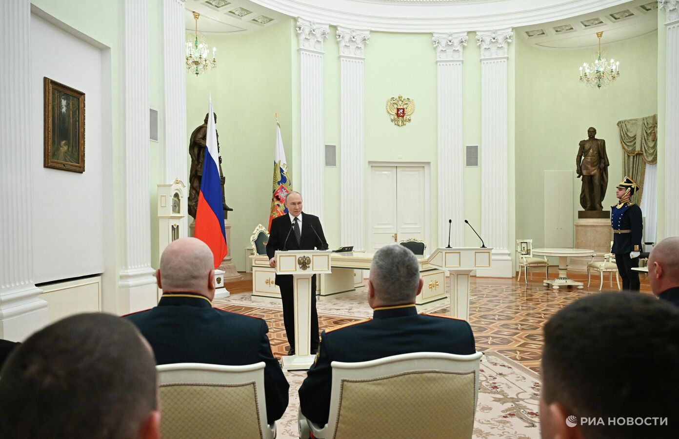 МОСКВА, 23 фев - РИА Новости. Президент России Владимир Путин вручил медаль "Золотая звезда" командиру бригады, который докладывал ему об освобождении Гуляйполя в Запорожской области.