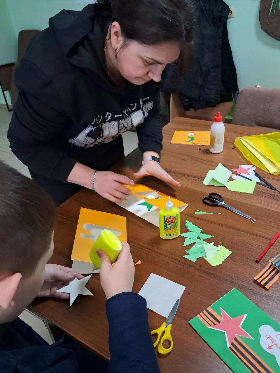 Участники мероприятия своими руками изготовили поздравительные открытки для военнослужащих. В каждую работу они вписали искренние слова поддержки.