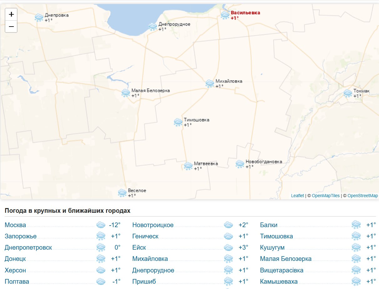Погода 26 февраля 2026 года в крупных и ближайших к Васильевке городах и населённых пунктах