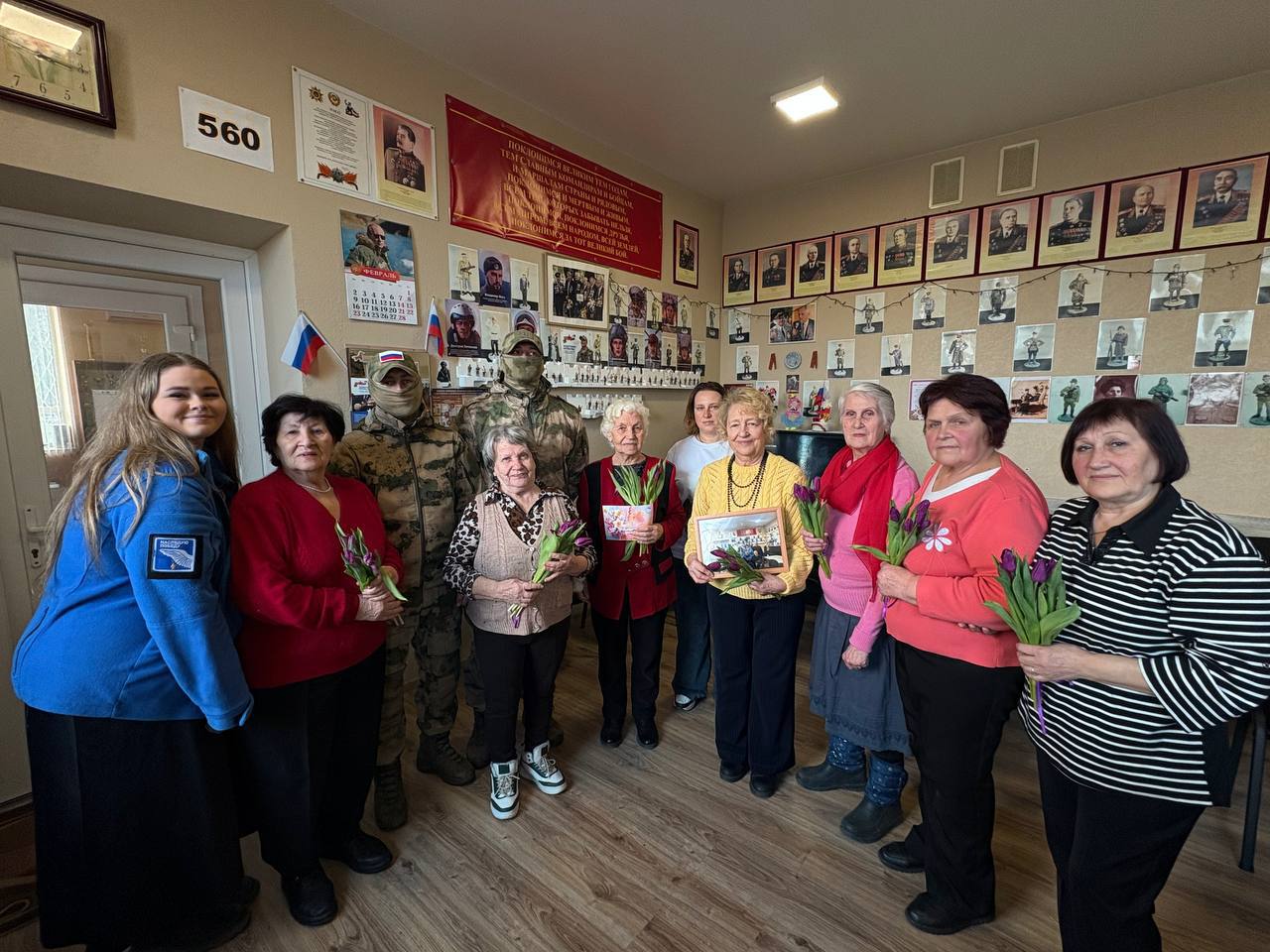 Волонтёры вместе с военнослужащими Федеральной службы войск национальной гвардии Российской Федерации и делегатами от Правительства и Губернатора Ленинградской области посетили Союз ветеранов.