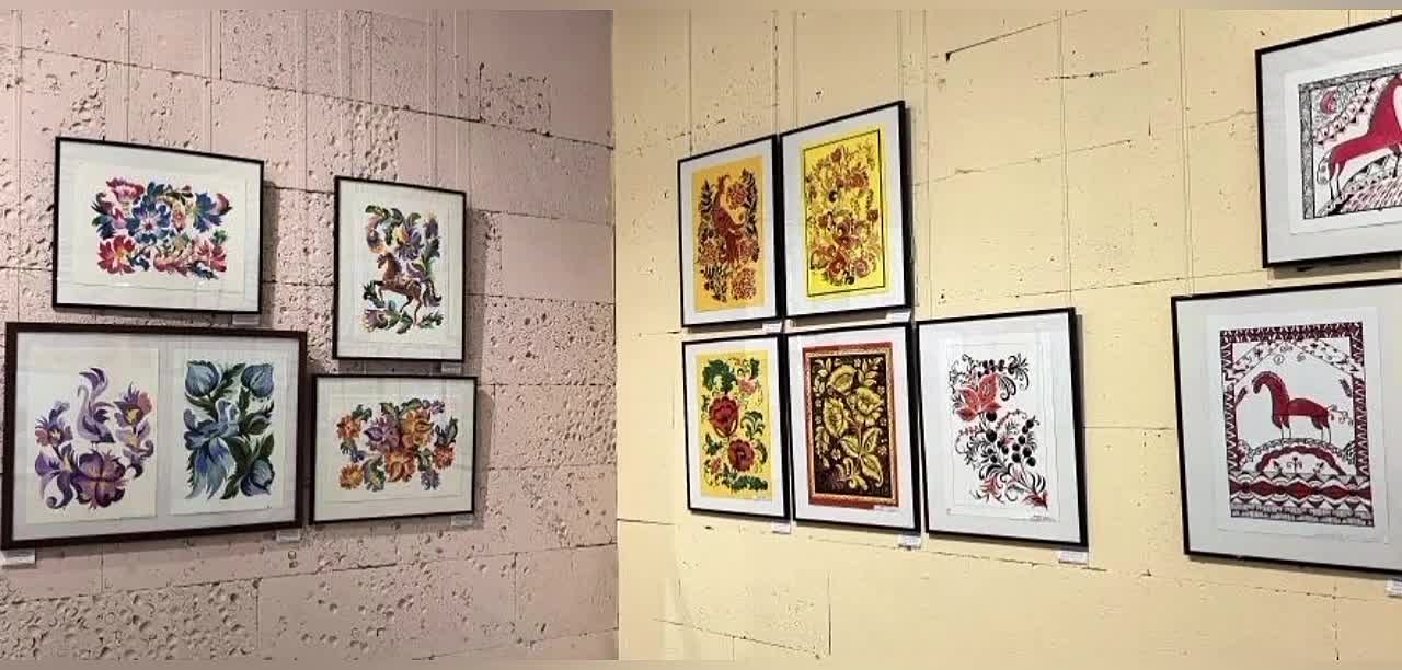 В большом зале, в составе другой выставки, можно увидеть работы опытного педагога Детской школы искусств Галины Хахулиной, которая много лет делится своим мастерством с учениками. Аккуратно выписанные детали узоров, тончайшие мазки кисти, сочные краски — всё это вызывает чувство искреннего восхищения и легкой зависти.
