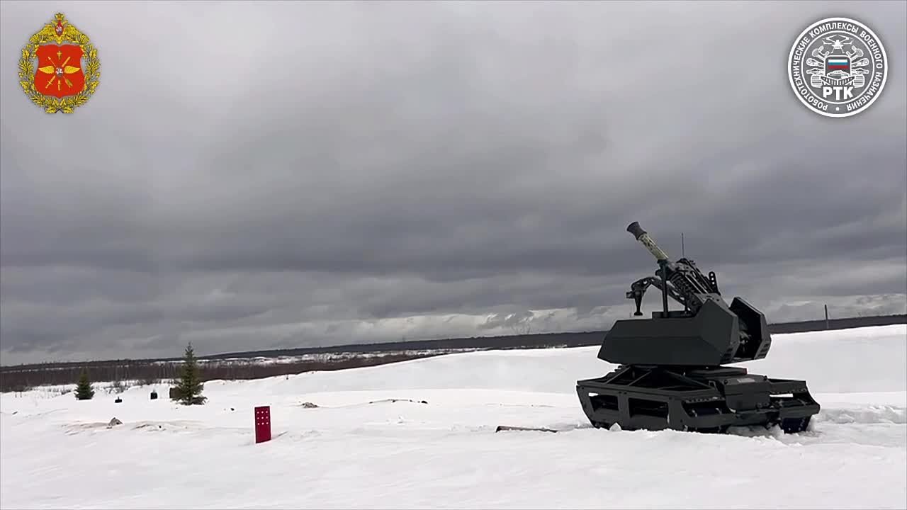 Кадры полигонных испытаний НРТК «Курьер» с модулем миномётного вооружения «Багульник-82».