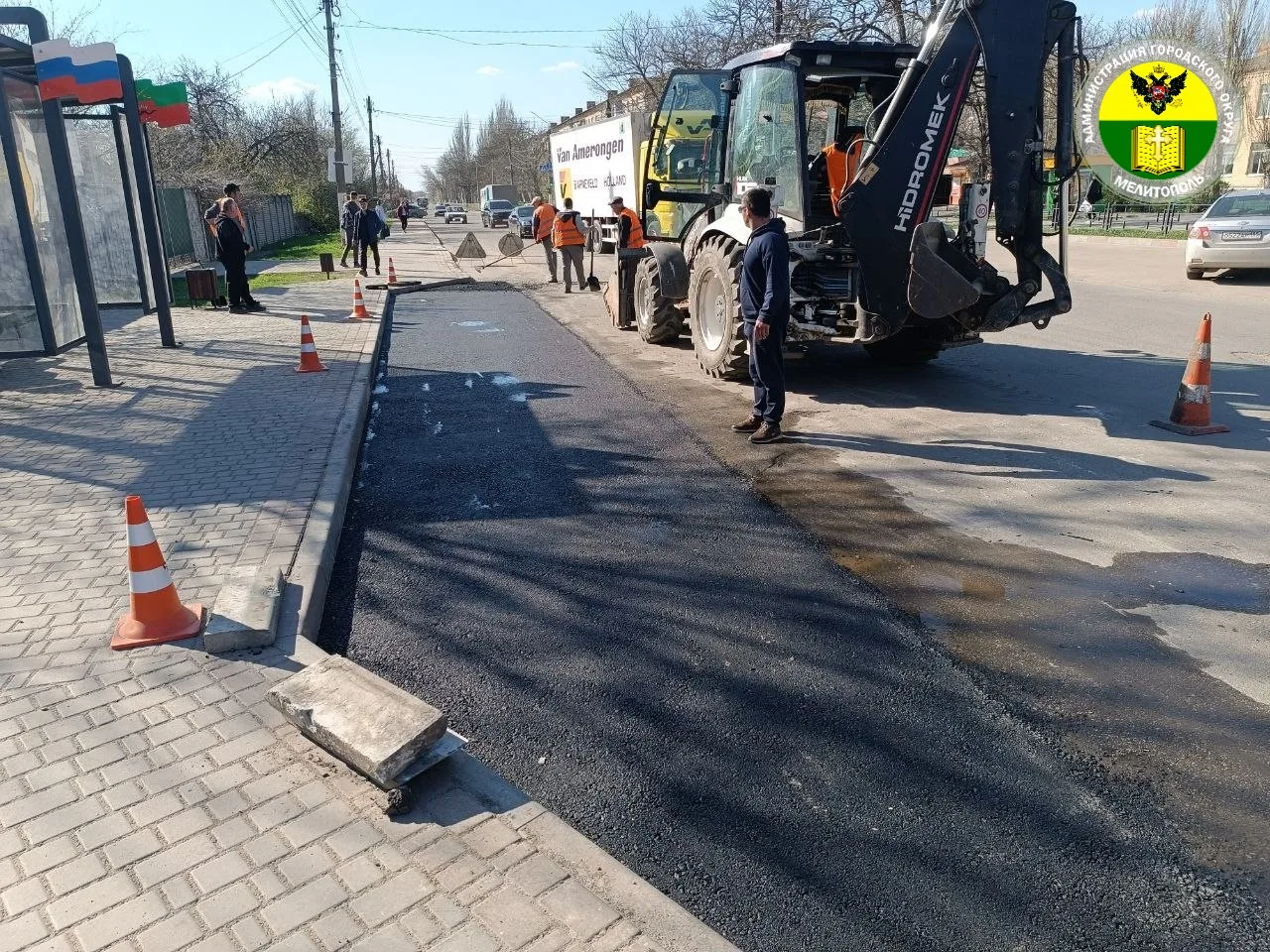 Сотрудники МУП «Мелитопольский асфальтобетонный завод» выполнили ремонт дорожного покрытия на улице Екатерины Великой, 299, в районе остановки общественного транспорта.
