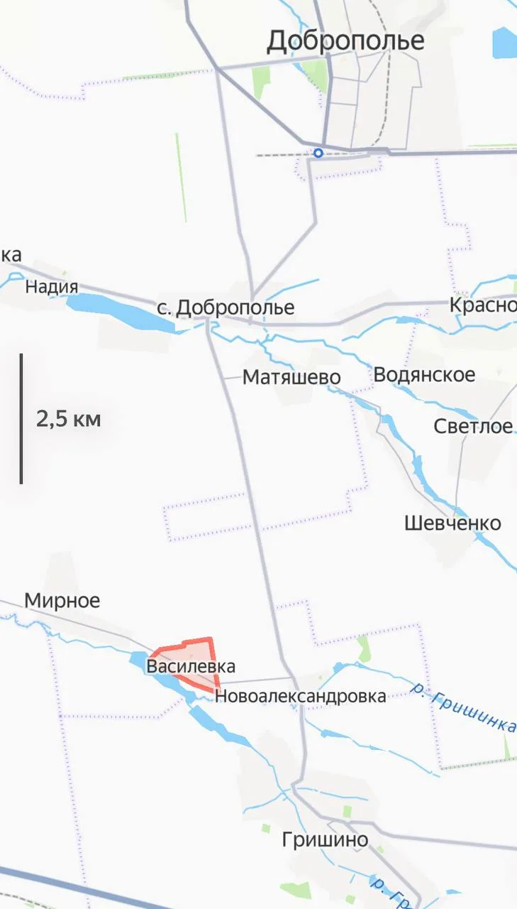 По поступающим оперативным данным, помимо начала боев за Новоалександровку, наши подразделения вошли в Васильевку, лежащую на берегу Гришинского плёса.