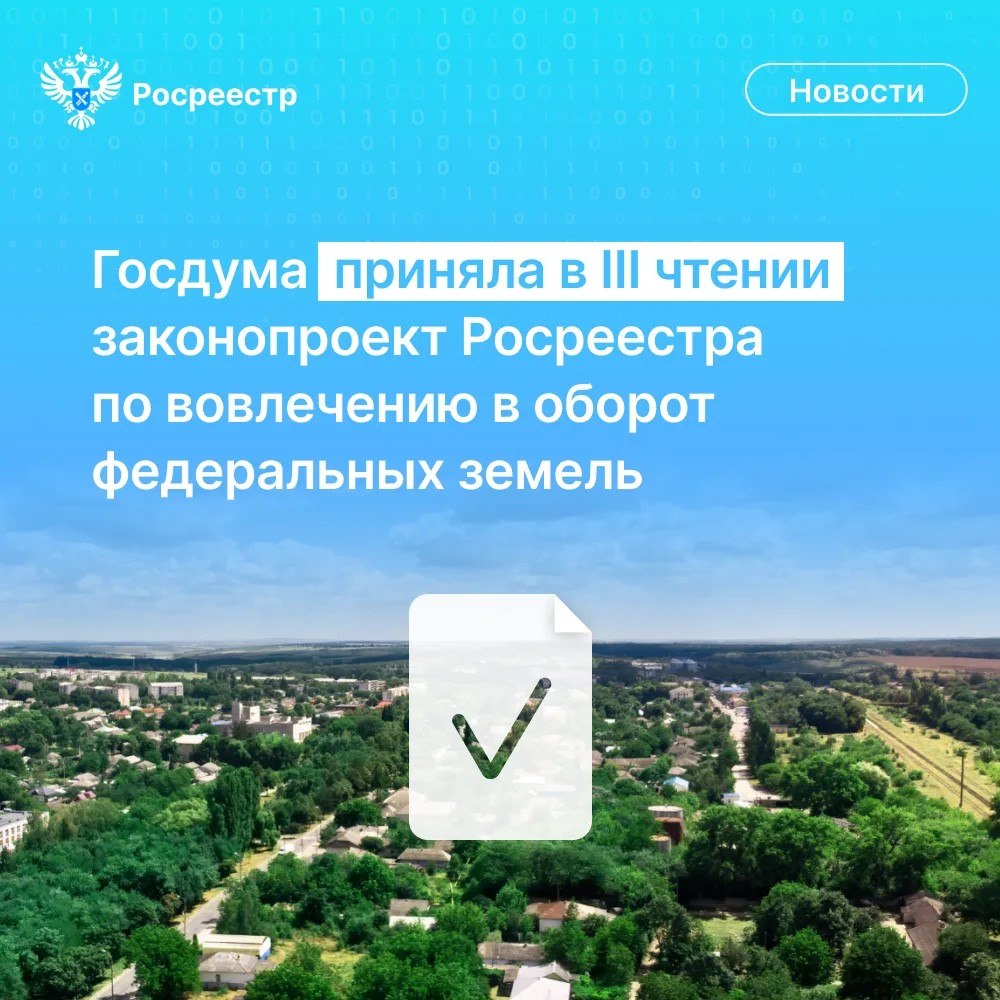 Немного важной и полезной информации, друзья. Госдума приняла во II и III чтениях законопроект Росреестра, направленный на эффективное вовлечение в оборот федеральных земель.