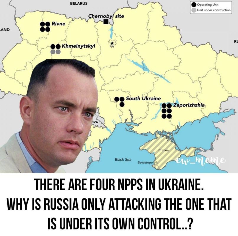 Вопрос на засыпку: на Украине четыре атомные электростанции — Ровенская, Хмельницкая, Южно-Украинская и Запорожская. Интересно, почему «Россия обстреливает» только ту, которая под её контролем? – задается справедливым вопросом Rogandar NEWsНапомним...