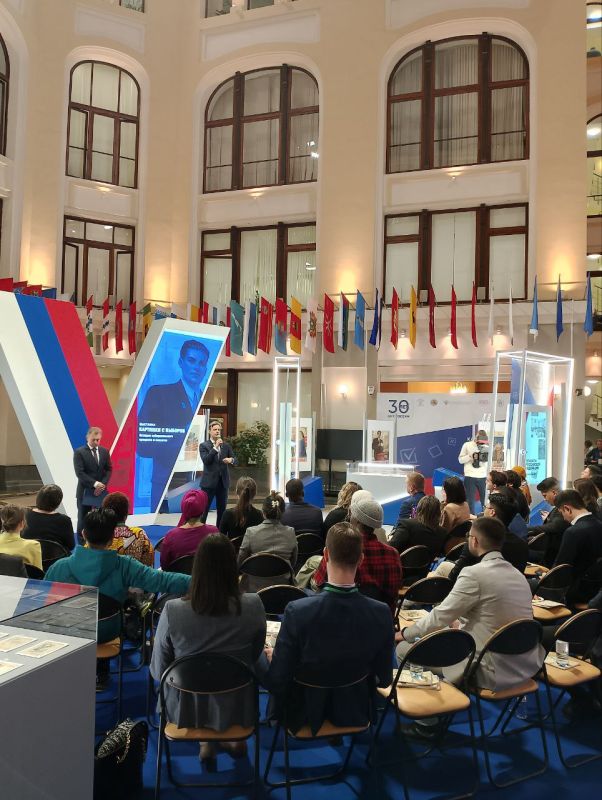 Молодые люди познакомились с выставкой «Картинки с выборов: история избирательного процесса в плакатах», организованной совместно с Государственным музеем современной истории России и Государственной публичной исторической библиотекой.